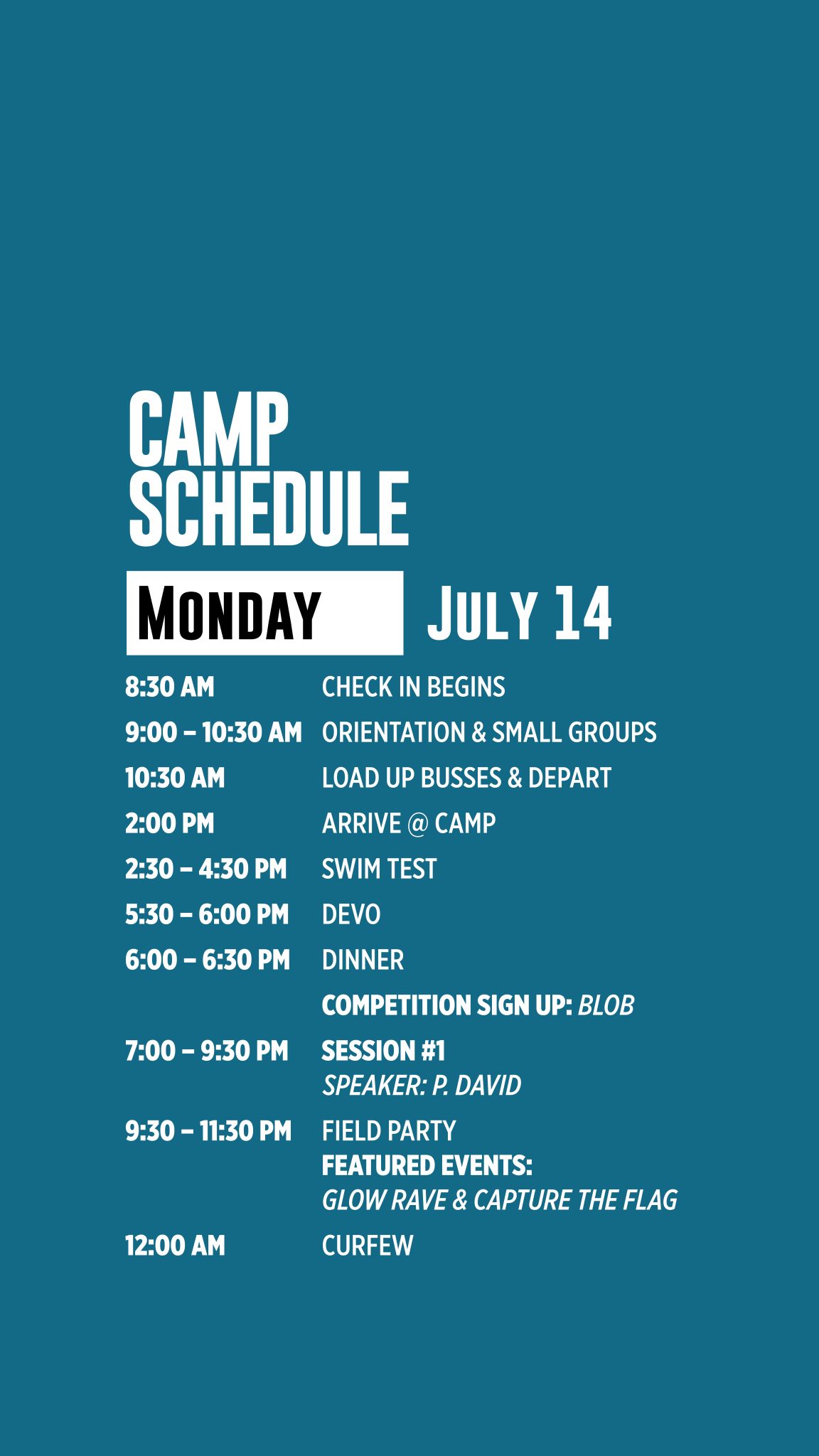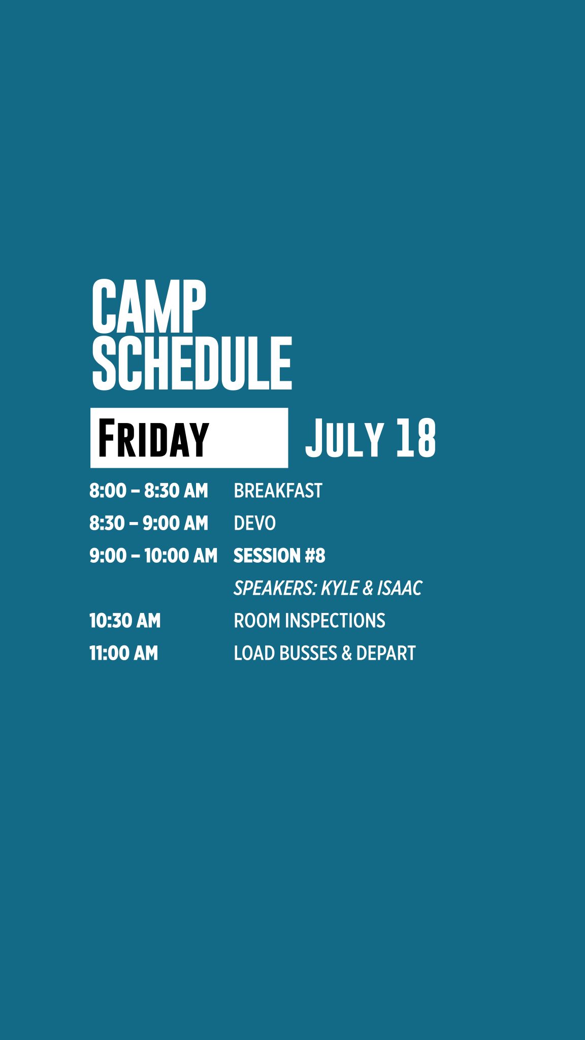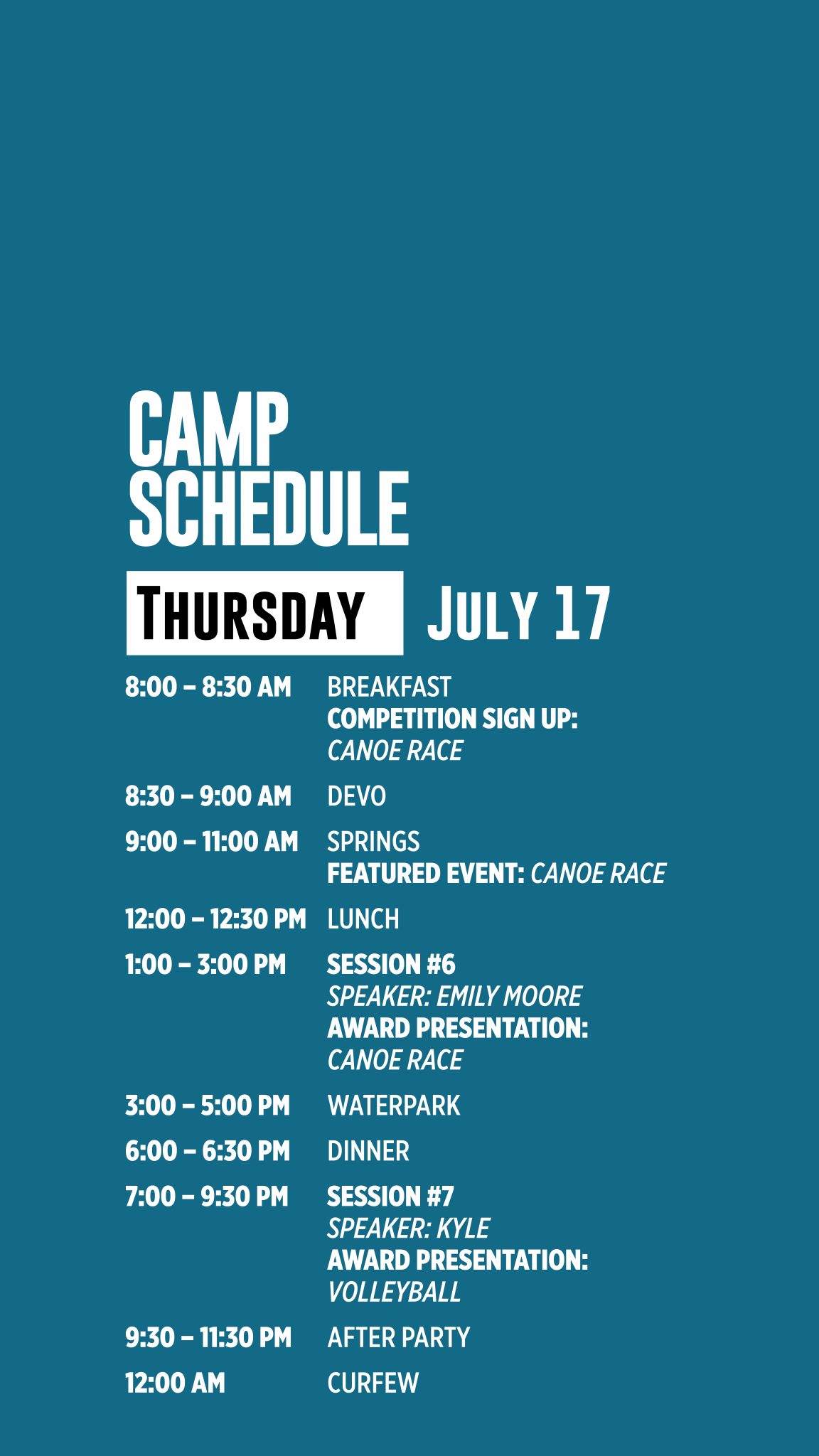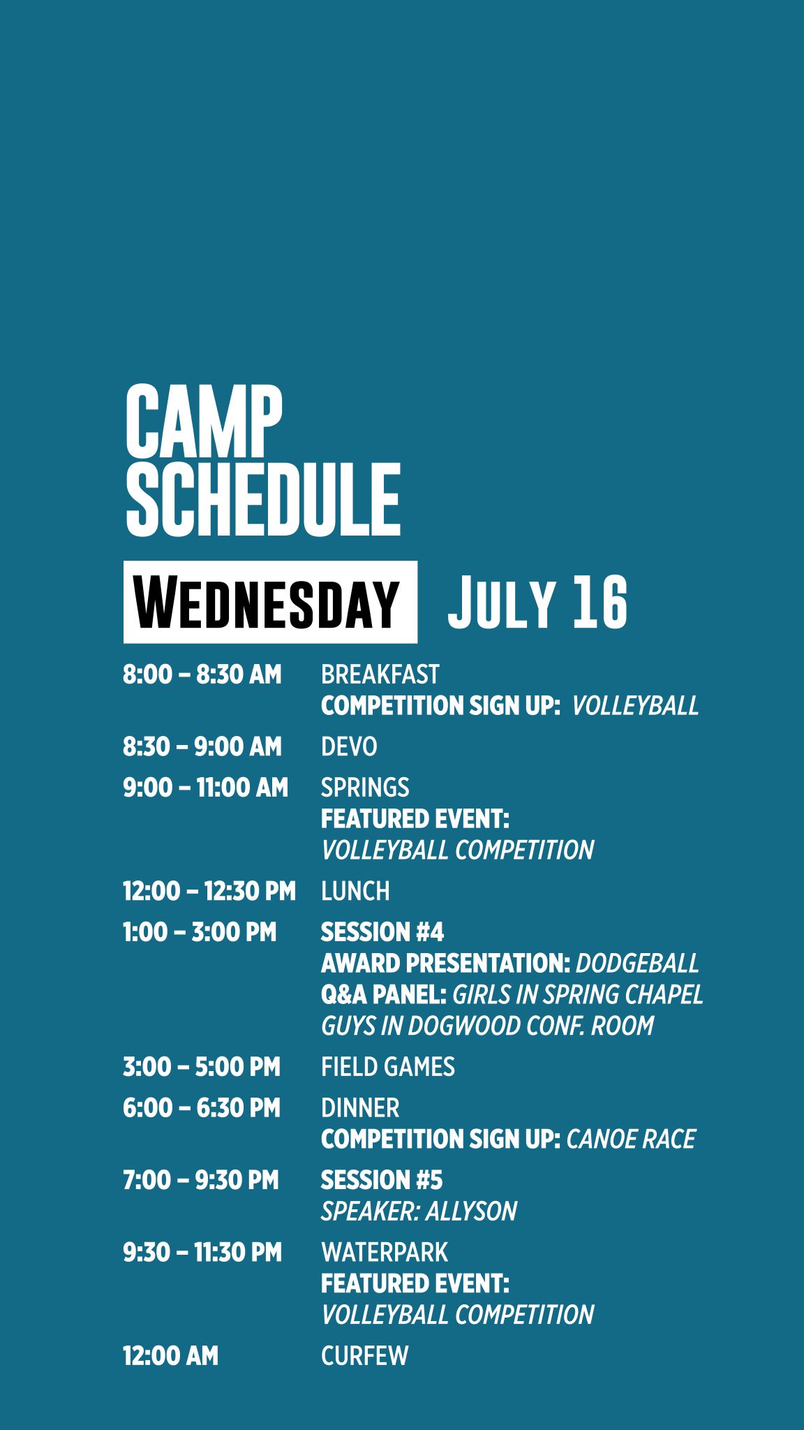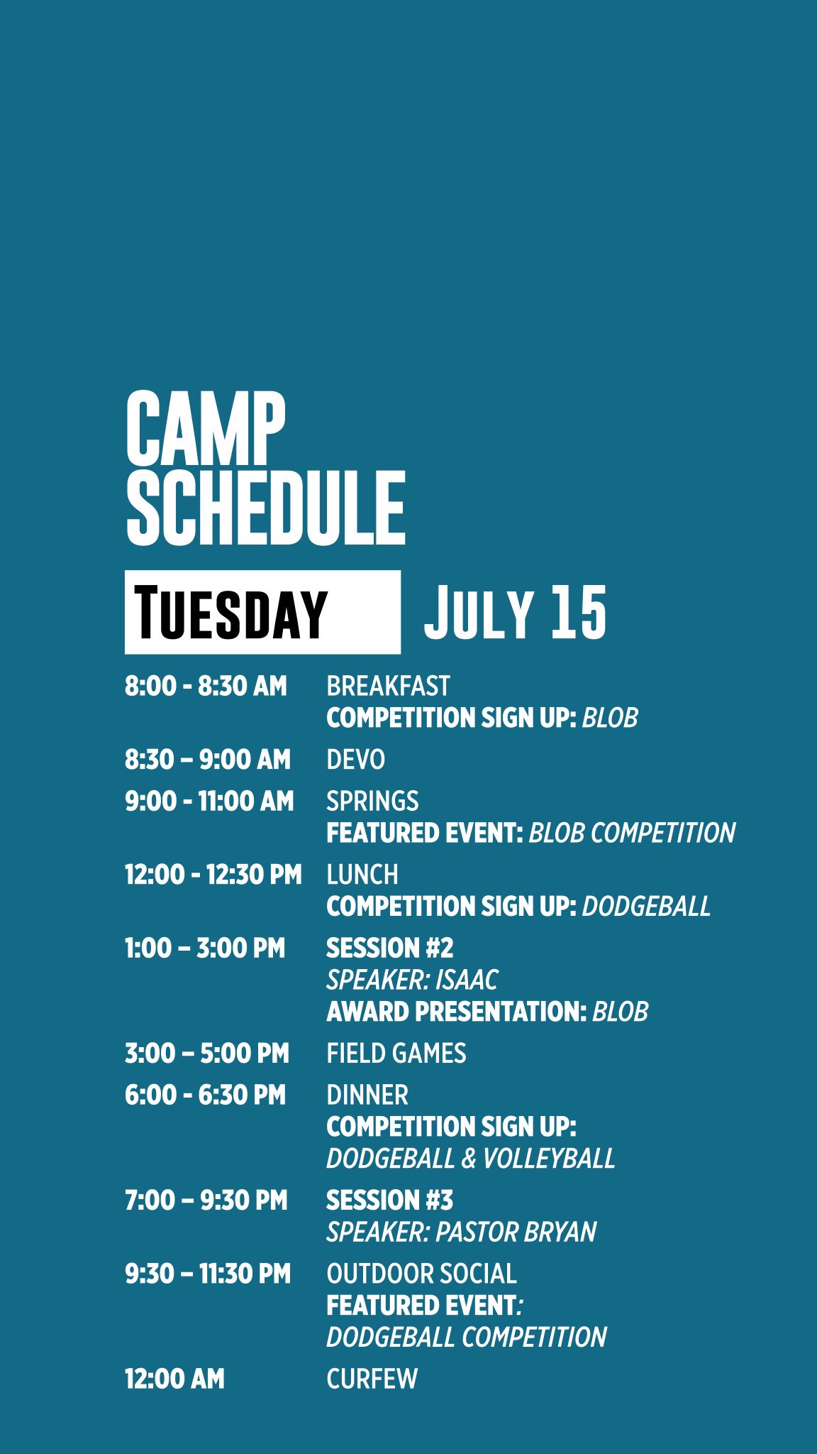 campSchedule Press and hold to download the schedule for each day. You can set these as wallpapers for your phone.